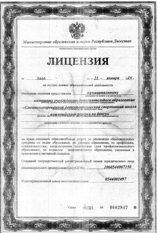 Полное наименование образовательной организации* Муниципальное казённое образовательное учреждение дополнительного образования Специализированная детско-юношеская школа олимпийского резерва по боксу