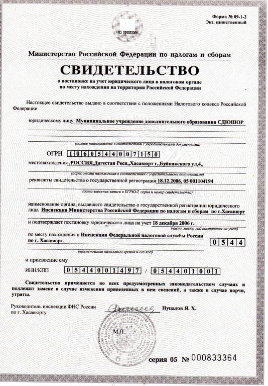 Свидетельство о постановке на учет в налоговом органе (скачать) (посмотреть)